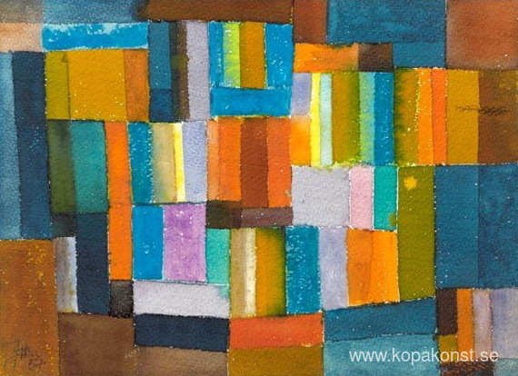 Vi erbjuder dig en hantverksmässig reproduktion på duk av det berömda konstverket 'Komposition i orange och blågrönt' av Johannes Itten, från Reproduktionsmuseet.