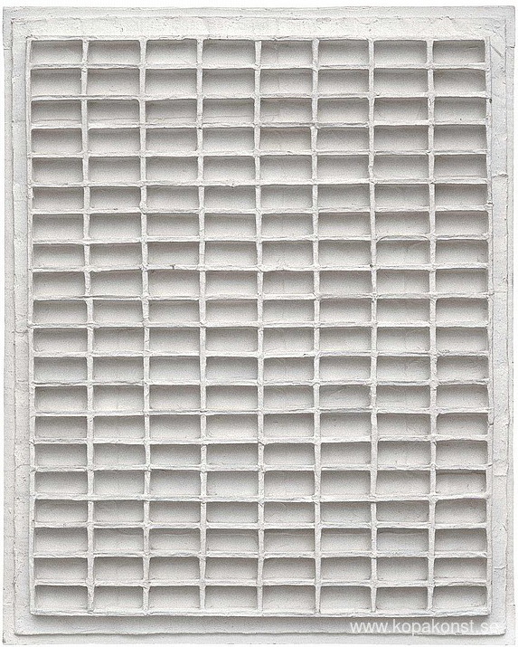 Vi erbjuder dig en hantverksmässig reproduktion på duk av det berömda konstverket 'Vit konstruktionsavlastning R 62-1' av Johannes Jan Schoonhoven, från Reproduktionsmuseet.