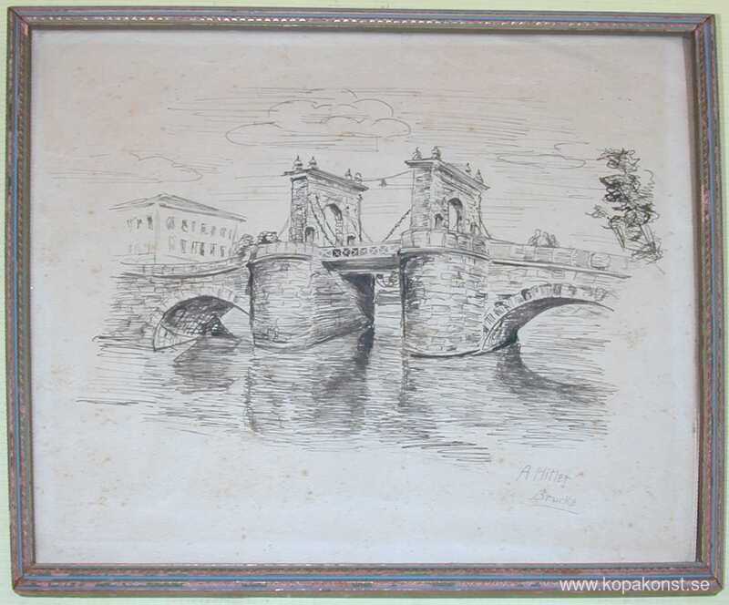 Vi erbjuder dig en hantverksmässig reproduktion på duk av det berömda konstverket 'Bro med torn' av Adolf Hitler, från Reproduktionsmuseet.