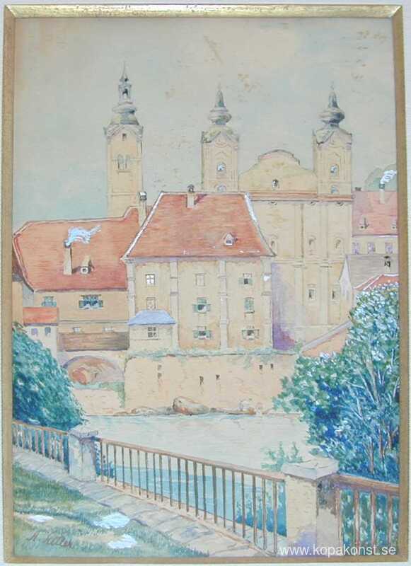 Vi erbjuder dig en hantverksmässig reproduktion på duk av det berömda konstverket 'Lambergs slott' av Adolf Hitler, från Reproduktionsmuseet.