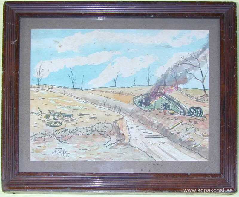 Vi erbjuder dig en hantverksmässig reproduktion på duk av det berömda konstverket 'Röktank' av Adolf Hitler, från Reproduktionsmuseet.
