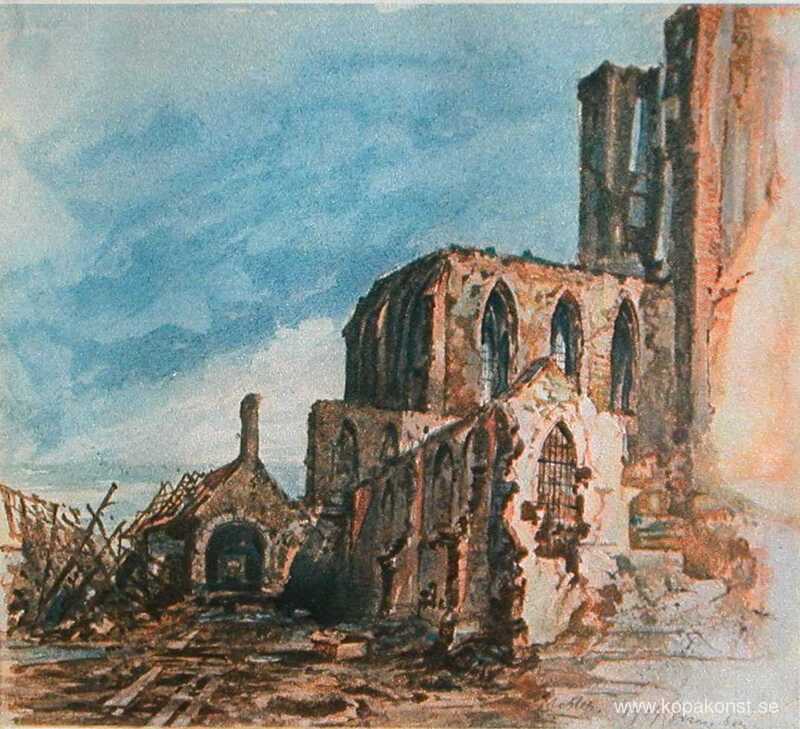 Vi erbjuder dig en hantverksmässig reproduktion på duk av det berömda konstverket 'Ruinerna av ett kloster i Messines' av Adolf Hitler, från Reproduktionsmuseet.