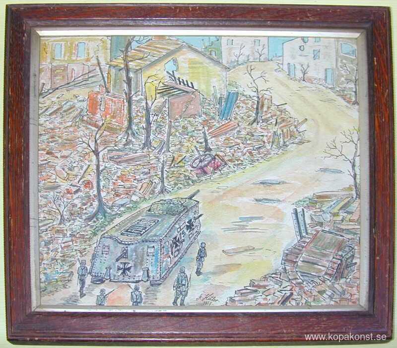 Vi erbjuder dig en hantverksmässig reproduktion på duk av det berömda konstverket 'Tankpatrull' av Adolf Hitler, från Reproduktionsmuseet.