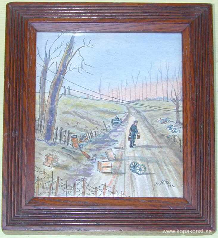 Vi erbjuder dig en hantverksmässig reproduktion på duk av det berömda konstverket 'Vägen till ingenmansland' av Adolf Hitler, från Reproduktionsmuseet.