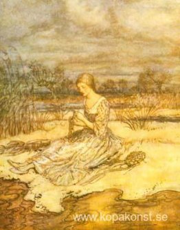 Hon satte sig och flätade på sig en overall av rusar och en matc