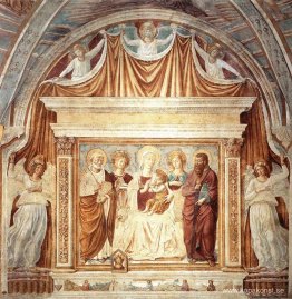Madonna och barn mellan St. Francis och St. Bernardine av Siena