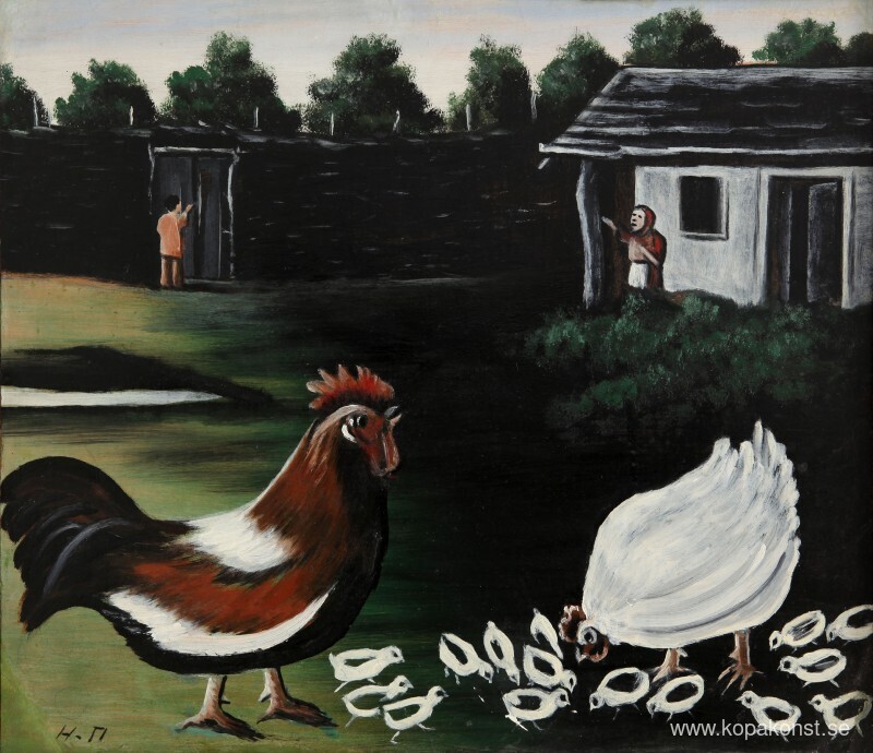 Vi erbjuder dig en hantverksmässig reproduktion på duk av det berömda konstverket 'Höna med sina ungar' av Niko Pirosmani, från Reproduktionsmuseet.