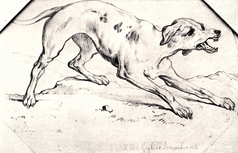 Vi erbjuder dig en hantverksmässig reproduktion på duk av det berömda konstverket 'Hund' av Vincent van Gogh, från Reproduktionsmuseet.