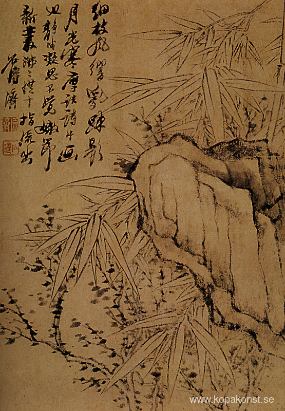 Vi erbjuder dig en hantverksmässig reproduktion på duk av det berömda konstverket 'Bambu och sten' av Shitao, från Reproduktionsmuseet.