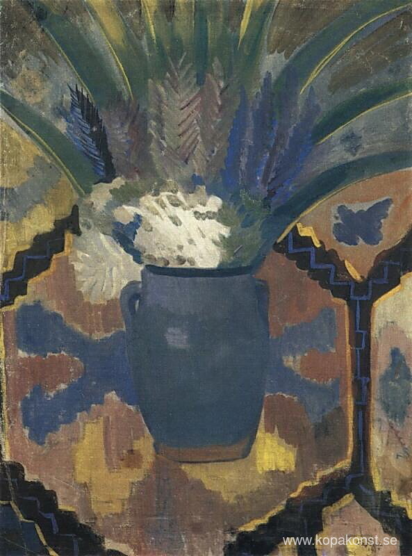 Vi erbjuder dig en hantverksmässig reproduktion på duk av det berömda konstverket 'Blommor mot bakgrund av mattan' av Martiros Saryan, från Reproduktionsmuseet.