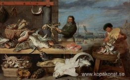 Stilleben med frukt, dött vilt, grönsaker, en levande apa, ekorr