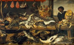 Stilleben med döda vilt frukter och grönsaker på en marknad