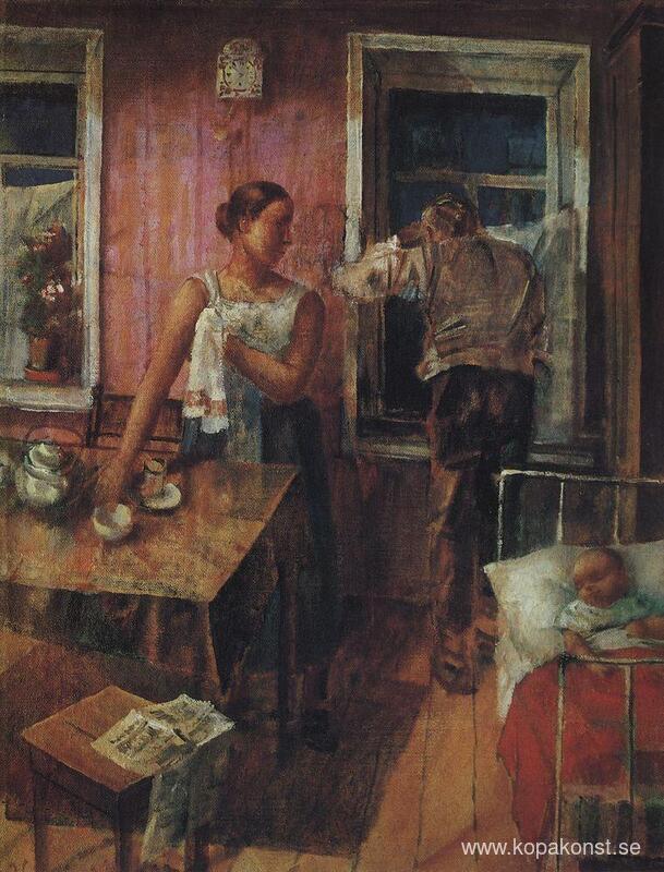 Vi erbjuder dig en hantverksmässig reproduktion på duk av det berömda konstverket 'Ångest ' av Kuzma Petrov-Vodkin, från Reproduktionsmuseet.