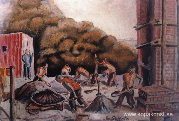 Vi erbjuder dig en hantverksmässig reproduktion på duk av det berömda konstverket 'ARBETARE I SOPHIATOWN ' av Gerard Sekoto, från Reproduktionsmuseet.