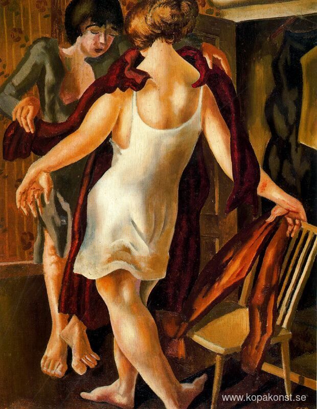 Vi erbjuder dig en hantverksmässig reproduktion på duk av det berömda konstverket 'Att välja en klänning' av Stanley Spencer, från Reproduktionsmuseet.