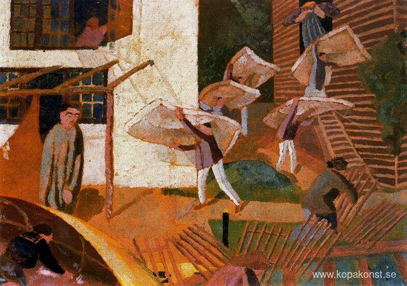 Vi erbjuder dig en hantverksmässig reproduktion på duk av det berömda konstverket 'Bärande madrasser' av Stanley Spencer, från Reproduktionsmuseet.