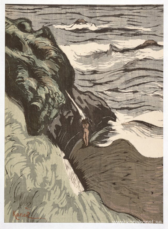 Vi erbjuder dig en hantverksmässig reproduktion på duk av det berömda konstverket 'Bad i Bretagne' av Kanae Yamamoto, från Reproduktionsmuseet.