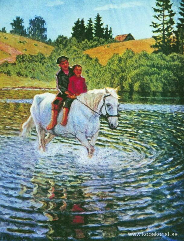Vi erbjuder dig en hantverksmässig reproduktion på duk av det berömda konstverket 'Barn på en häst' av Nikolay Bogdanov-Belsky, från Reproduktionsmuseet.