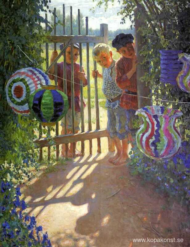 Vi erbjuder dig en hantverksmässig reproduktion på duk av det berömda konstverket 'Besökare' av Nikolay Bogdanov-Belsky, från Reproduktionsmuseet.