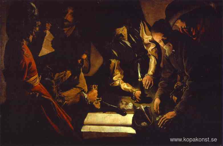 Vi erbjuder dig en hantverksmässig reproduktion på duk av det berömda konstverket 'Betalning av skatter' av Georges de la Tour, från Reproduktionsmuseet.