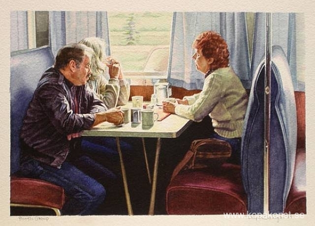 Vi erbjuder dig en hantverksmässig reproduktion på duk av det berömda konstverket 'Booth Group' av Ralph Goings, från Reproduktionsmuseet.