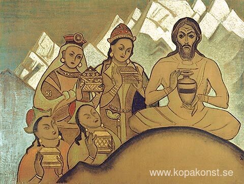 Vi erbjuder dig en hantverksmässig reproduktion på duk av det berömda konstverket 'Den heliga gåvan' av Nicholas Roerich, från Reproduktionsmuseet.
