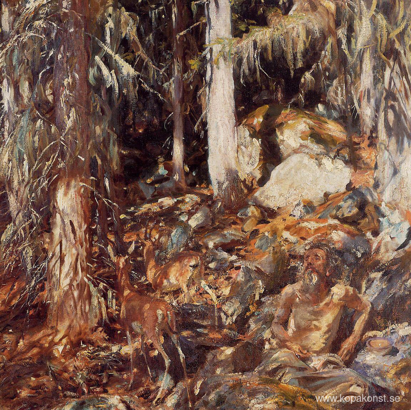 Vi erbjuder dig en hantverksmässig reproduktion på duk av det berömda konstverket 'Eremiten' av John Singer Sargent, från Reproduktionsmuseet.