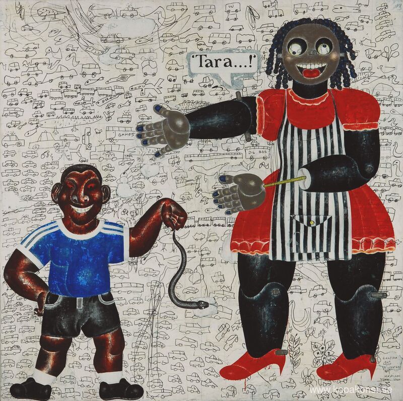 Vi erbjuder dig en hantverksmässig reproduktion på duk av det berömda konstverket 'Födelse av en vuxen' av Nyoman Masriadi, från Reproduktionsmuseet.