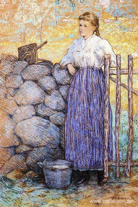 Vi erbjuder dig en hantverksmässig reproduktion på duk av det berömda konstverket 'Flicka som står vid en grind' av Julian Alden Weir, från Reproduktionsmuseet.