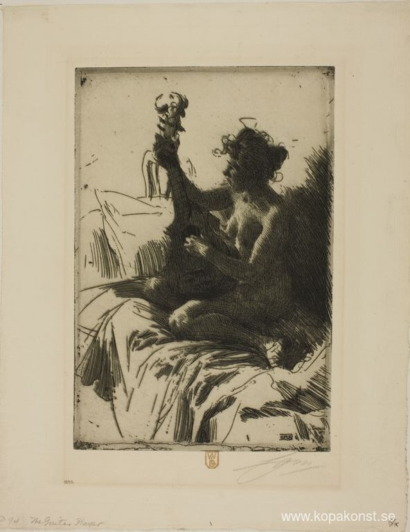 Vi erbjuder dig en hantverksmässig reproduktion på duk av det berömda konstverket 'Gitarren' av Anders Zorn, från Reproduktionsmuseet.