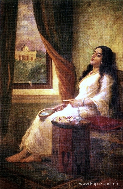 Vi erbjuder dig en hantverksmässig reproduktion på duk av det berömda konstverket 'I kontemplation' av Raja Ravi Varma, från Reproduktionsmuseet.