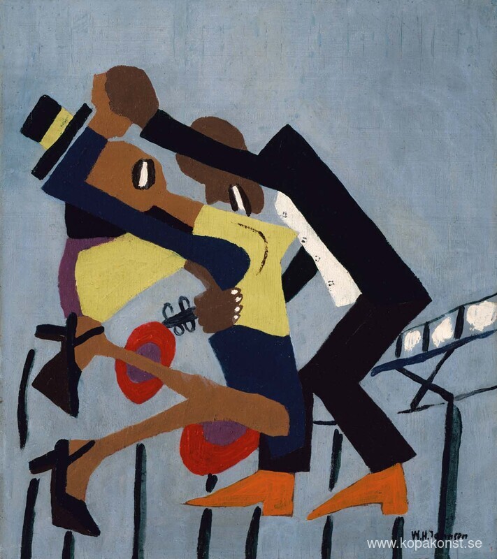 Vi erbjuder dig en hantverksmässig reproduktion på duk av det berömda konstverket 'Jitterbugs (III)' av William H. Johnson, från Reproduktionsmuseet.