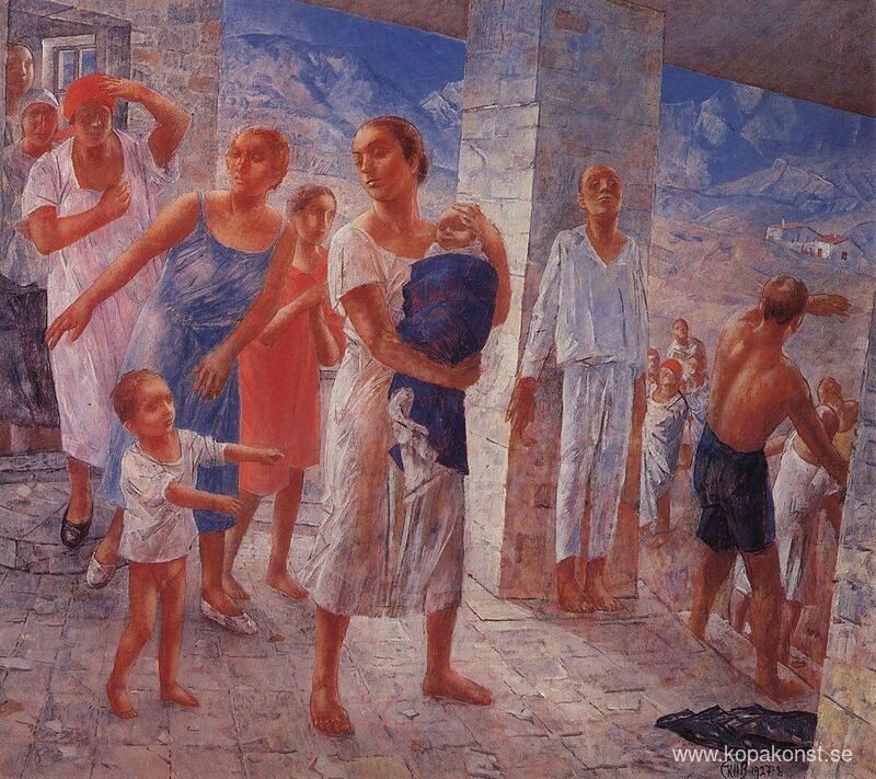 Vi erbjuder dig en hantverksmässig reproduktion på duk av det berömda konstverket 'Jordbävning på Krim ' av Kuzma Petrov-Vodkin, från Reproduktionsmuseet.