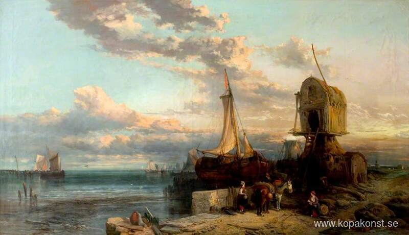 Vi erbjuder dig en hantverksmässig reproduktion på duk av det berömda konstverket 'Kustscen ' av James Webb , från Reproduktionsmuseet.