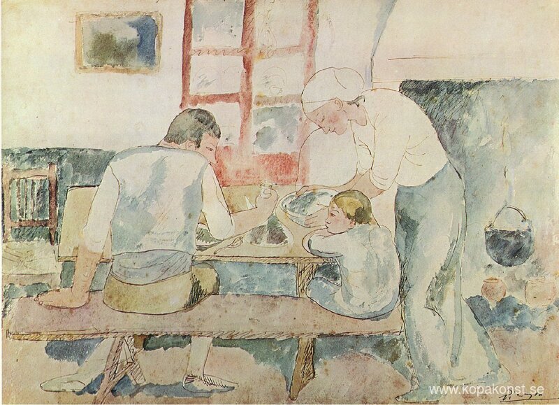 Vi erbjuder dig en hantverksmässig reproduktion på duk av det berömda konstverket 'Middagstid (Evocation of Horta d'Ebre)' av Pablo Picasso, från Reproduktionsmuseet.