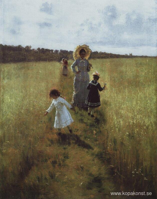 Vi erbjuder dig en hantverksmässig reproduktion på duk av det berömda konstverket 'På gränsstigen. V.A. Repina med barn som går på gränsvägen' av Ilya Repin, från Reproduktionsmuseet.