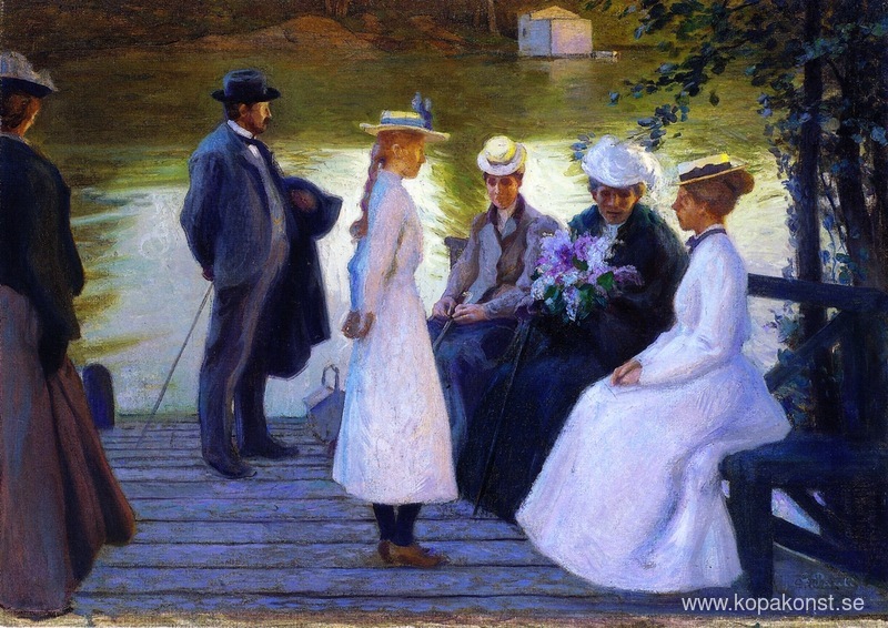 Vi erbjuder dig en hantverksmässig reproduktion på duk av det berömda konstverket 'På piren' av Georg Pauli, från Reproduktionsmuseet.