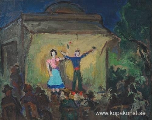 Vi erbjuder dig en hantverksmässig reproduktion på duk av det berömda konstverket 'På scen / Open air performance' av Theophrastos Triantafyllidis, från Reproduktionsmuseet.