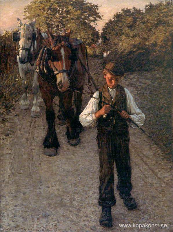 Vi erbjuder dig en hantverksmässig reproduktion på duk av det berömda konstverket 'Plogpojken' av Henry Herbert La Thangue, från Reproduktionsmuseet.