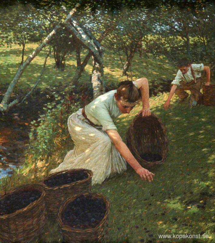 Vi erbjuder dig en hantverksmässig reproduktion på duk av det berömda konstverket 'Samla plommon' av Henry Herbert La Thangue, från Reproduktionsmuseet.