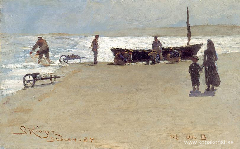 Vi erbjuder dig en hantverksmässig reproduktion på duk av det berömda konstverket 'Skagen' av Peder Severin Kroyer, från Reproduktionsmuseet.