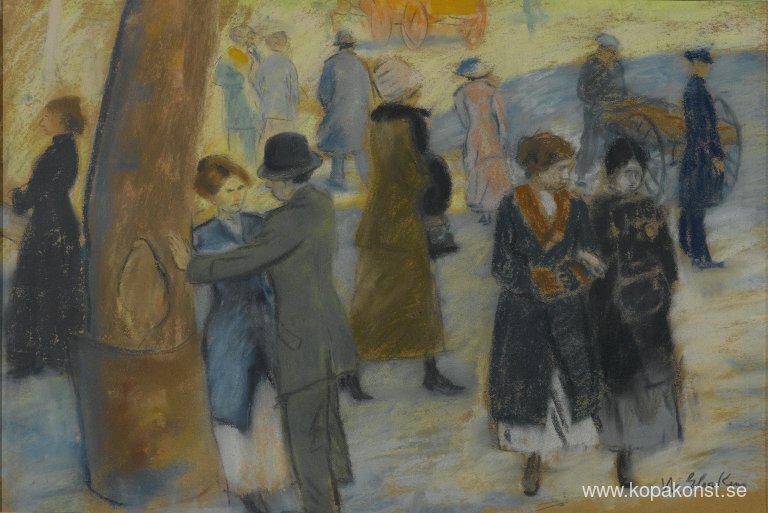 Vi erbjuder dig en hantverksmässig reproduktion på duk av det berömda konstverket 'Stadsscen' av William James Glackens, från Reproduktionsmuseet.
