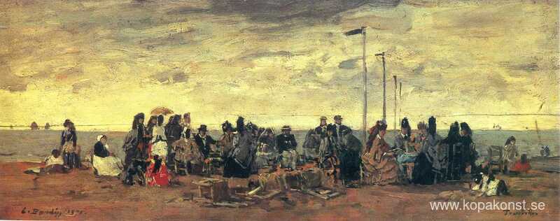 Vi erbjuder dig en hantverksmässig reproduktion på duk av det berömda konstverket 'Stranden' av Eugene Boudin, från Reproduktionsmuseet.