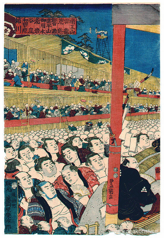 Vi erbjuder dig en hantverksmässig reproduktion på duk av det berömda konstverket 'Sumo åskådare' av Utagawa Kunisada, från Reproduktionsmuseet.