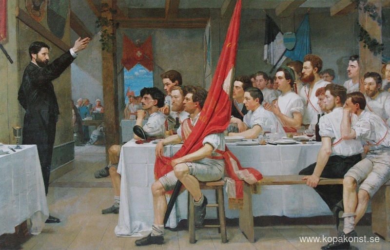 Vi erbjuder dig en hantverksmässig reproduktion på duk av det berömda konstverket 'Turner-banketten' av Ferdinand Hodler, från Reproduktionsmuseet.