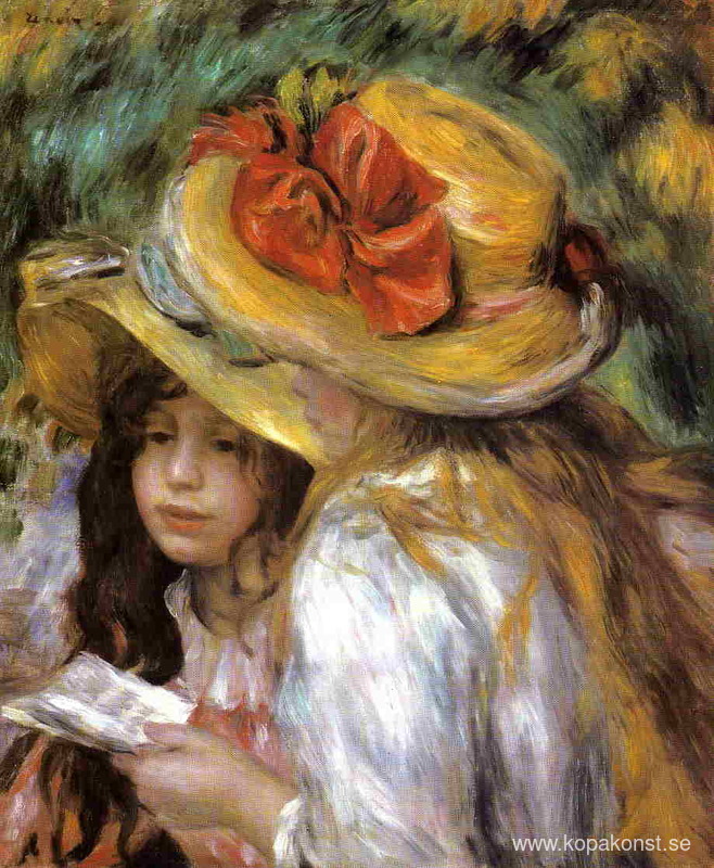 Vi erbjuder dig en hantverksmässig reproduktion på duk av det berömda konstverket 'Två unga flickor som läser' av Pierre-Auguste Renoir, från Reproduktionsmuseet.