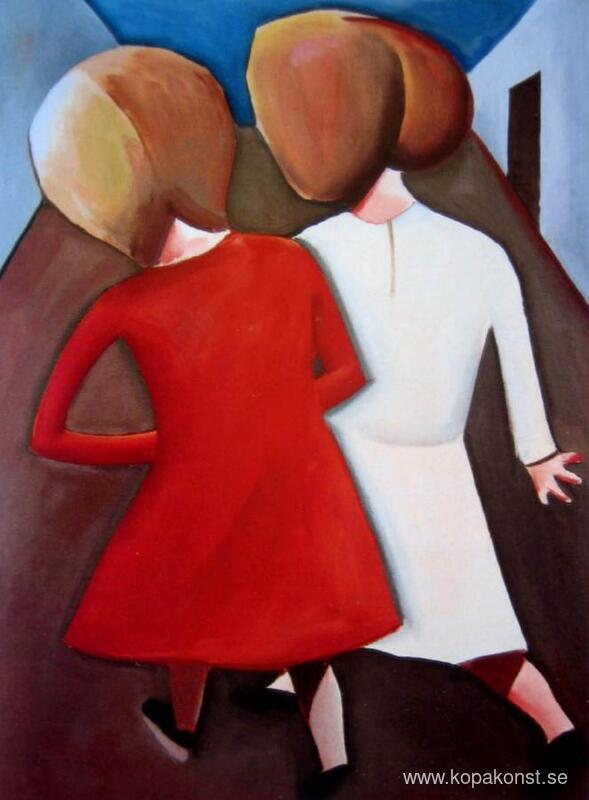 Vi erbjuder dig en hantverksmässig reproduktion på duk av det berömda konstverket 'Två vänner' av Charles Blackman, från Reproduktionsmuseet.