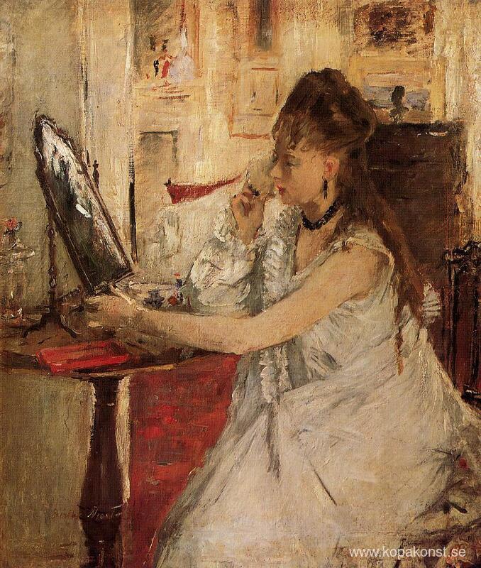 Vi erbjuder dig en hantverksmässig reproduktion på duk av det berömda konstverket 'Ung kvinna som pudrar hennes ansikte' av Berthe Morisot, från Reproduktionsmuseet.