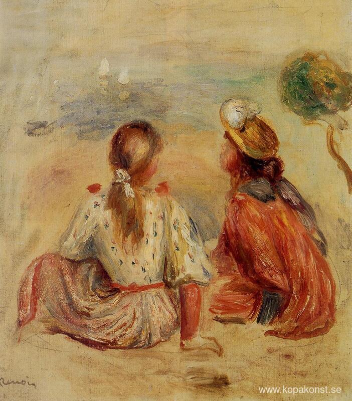 Vi erbjuder dig en hantverksmässig reproduktion på duk av det berömda konstverket 'Unga flickor på stranden' av Pierre-Auguste Renoir, från Reproduktionsmuseet.
