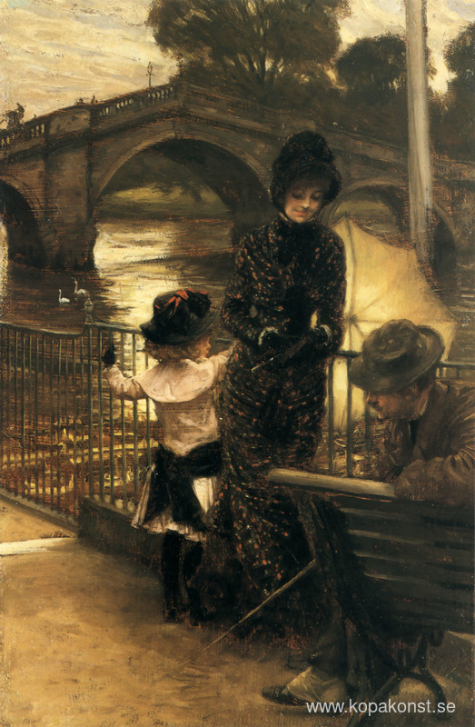 Vi erbjuder dig en hantverksmässig reproduktion på duk av det berömda konstverket 'Vid Themsen i Richmond' av James Tissot, från Reproduktionsmuseet.